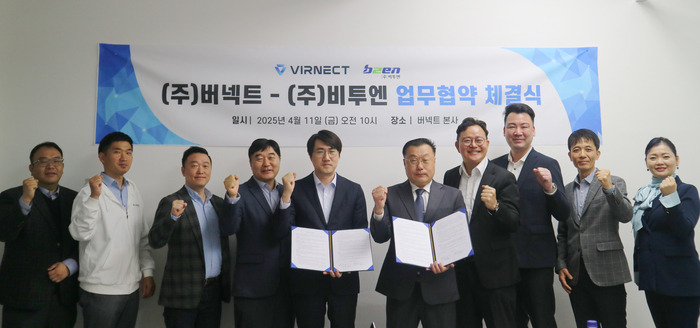 비투엔은 지난 11일 서울 용산구에 있는 버넥트 사옥에서 버넥트와 생성형 AI 기술 공동연구 및 협력을 위한 업무협약(MOU)을 체결했다.
