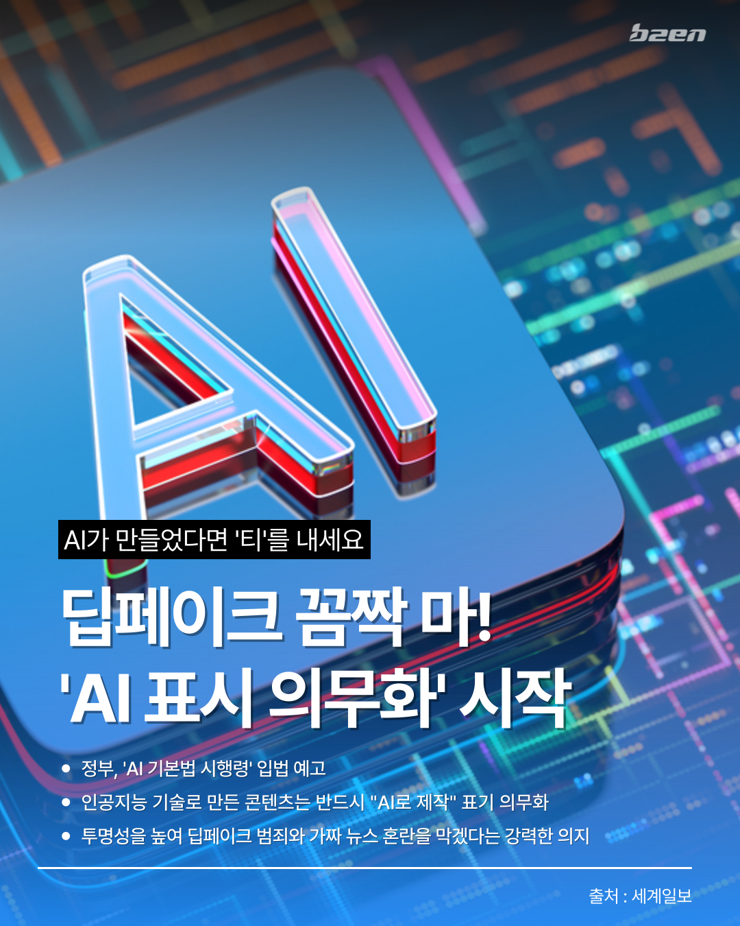 - 인공지능 기술로 만든 콘텐츠는 반드시 "AI로 제작" 표기 의무화